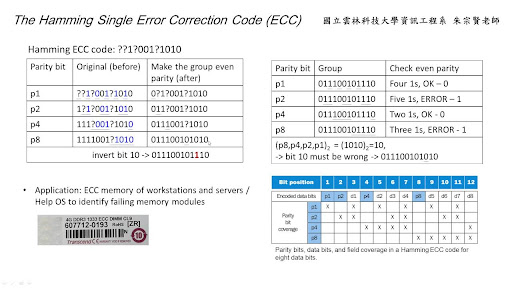 計算機組織 Chapter 5.5 The Hamming Single Error Correction Code (ECC) 朱宗賢 from www.youtube.com